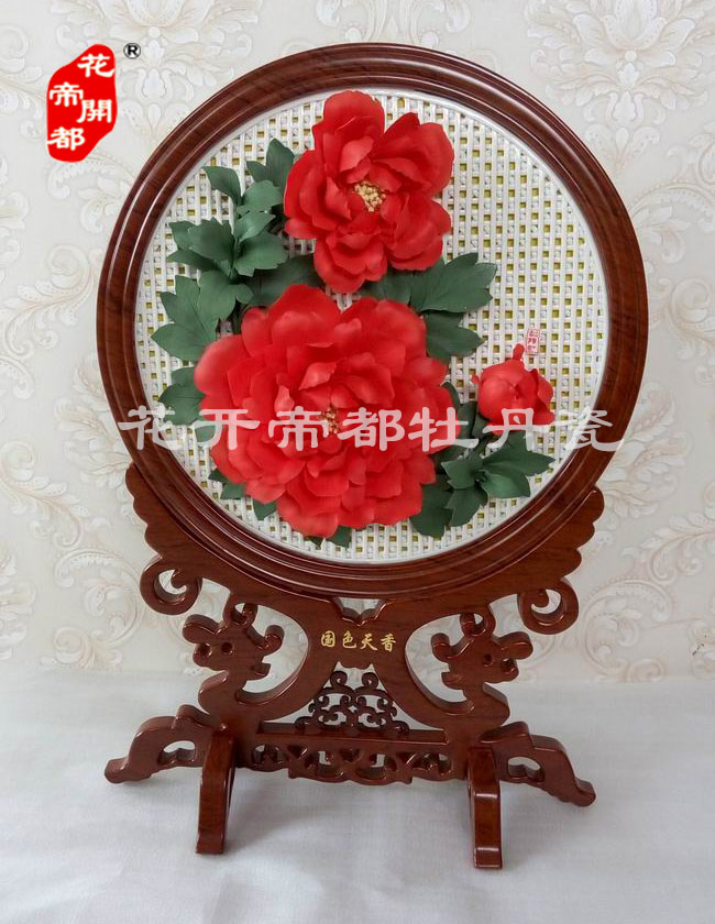 產品系列主要包括:牡丹瓷花盤、牡丹瓷屏風、牡丹瓷盆景、牡丹瓷壁掛和牡丹瓷鼎,形式多種多樣!每一件作品都是藝術的結晶,花、枝、葉均是手工捏制,造型逼真生動。